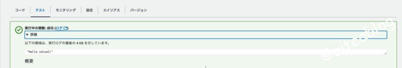 テストタブ内のイベントJSONを以下のように修正し、「テスト」ボタン押下する。
