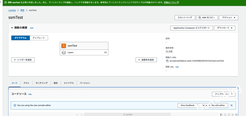 成功ログが出ればAmazonLinux2のLambdaでGolangがテスト実行が完了。