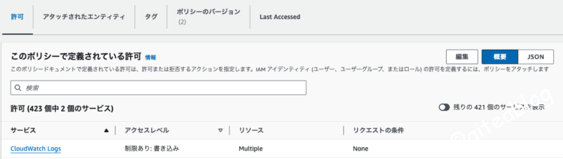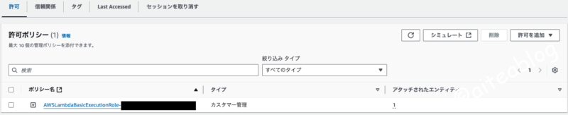 許可ポリシー内のポリシー名「AWSLambdaBasicExecutionRole-xxxxxxxxxxxxxxxxxxxxx」を選択。