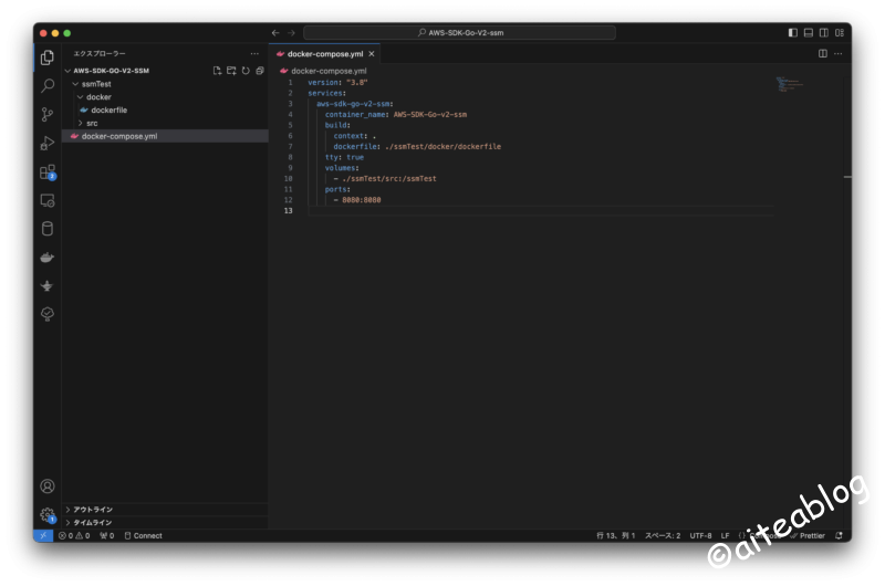 /ssmTest # go run main.go「Hello, World!」が表示されれば最低限、Dockerでgolangを実行する環境が整った。