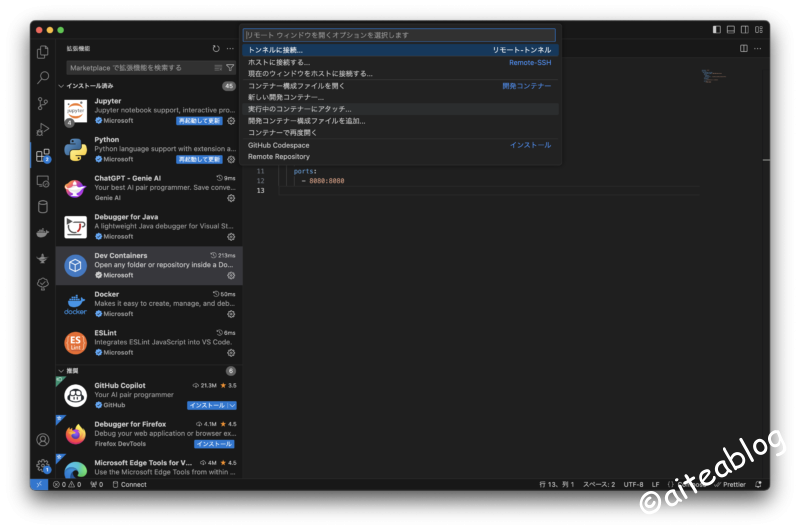 もしボタンがないほとは「Dev Containers」の拡張機の入れてください。